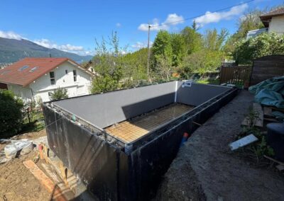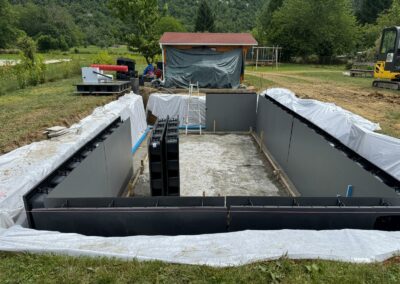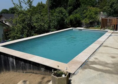 La piscine UNIBEO repose sur la réalisation d’une structure en béton armé. Les murs, le fond et les escaliers sont composés de béton armé respectant la norme BAEL applicables aux châteaux d’eaux et ponts.